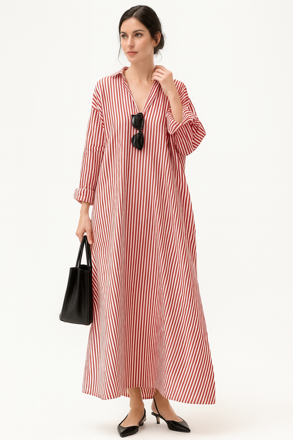 Bring sunshine to your wardrobe with this breezy red and white striped summer dress. Featuring a fresh, nautical-inspired stripe pattern, this lightweight dress is made for beach days, picnics, and every summer moment in between.