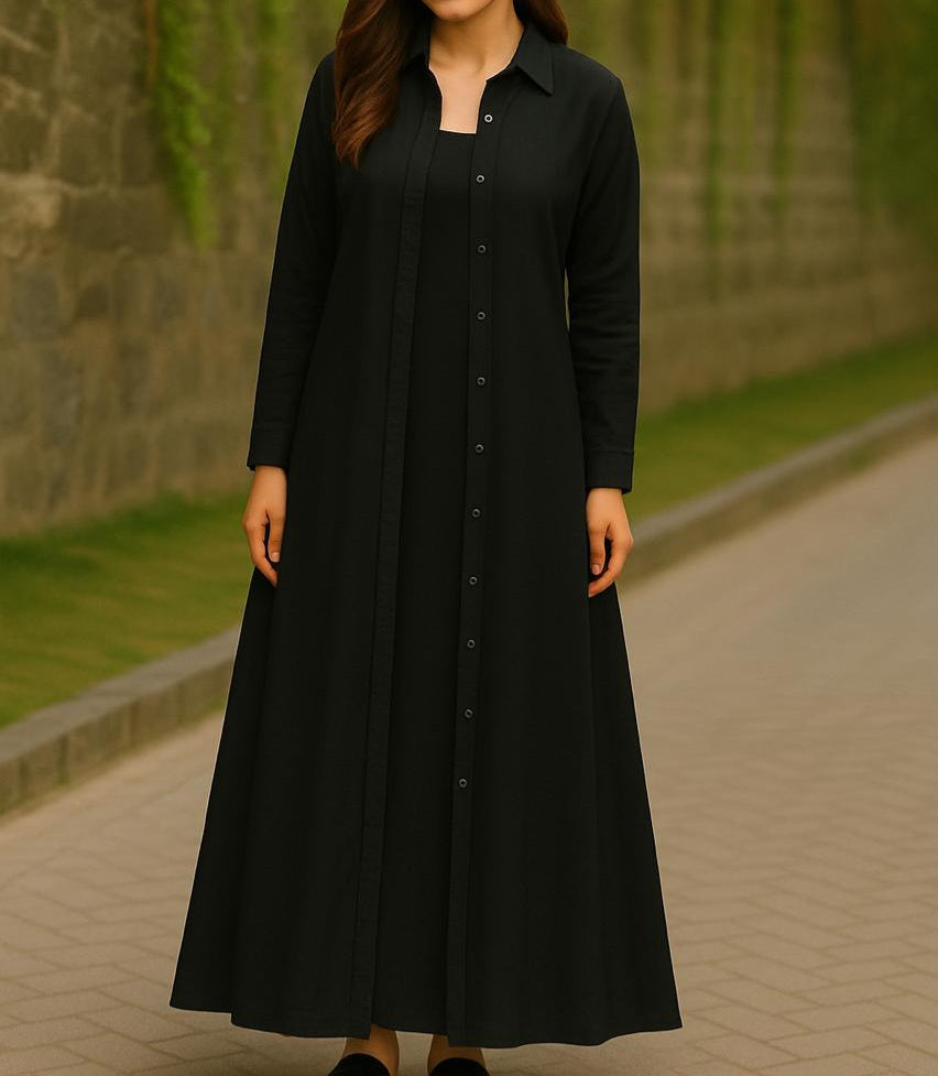 It Includes: Full Length Buttoned Shirt & Full Length Inner Gown