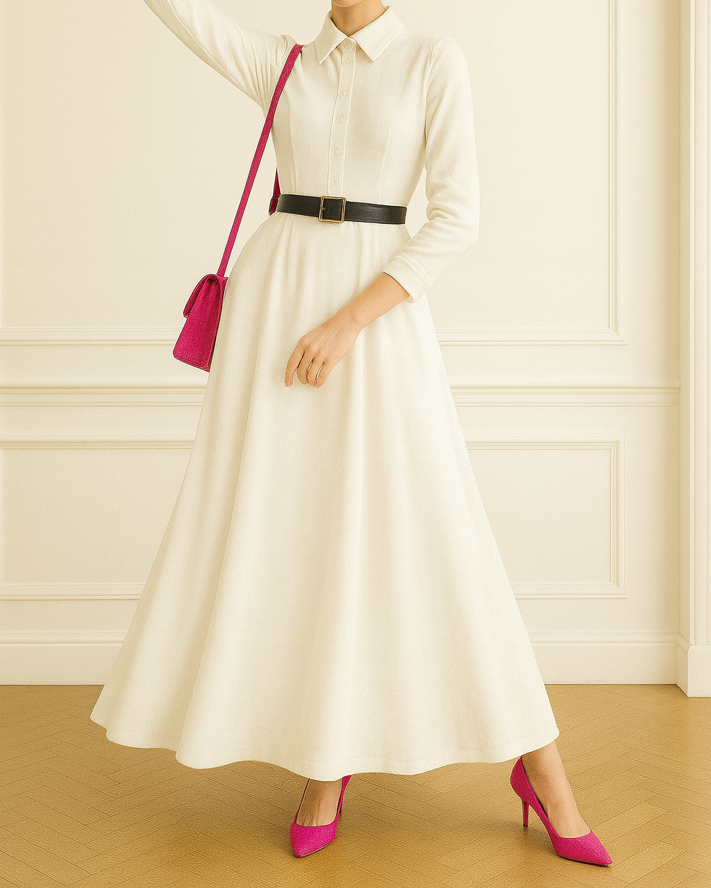 This stunning French velvet maxi dress is designed to make every moment unforgettable. The luxurious, slightly stretchable fabric drapes beautifully, offering both comfort and sophistication. A sleek belt cinches the waist, enhancing your silhouette and adding a refined touch of glamour. Available in bright, luminous colors, this dress effortlessly shines through any event, capturing the perfect blend of elegance and allure.
