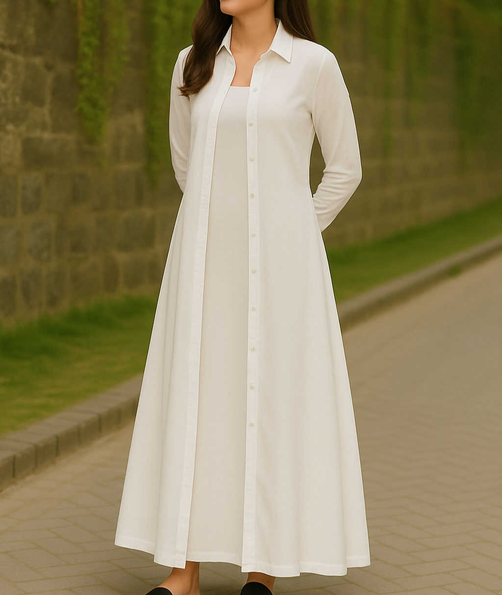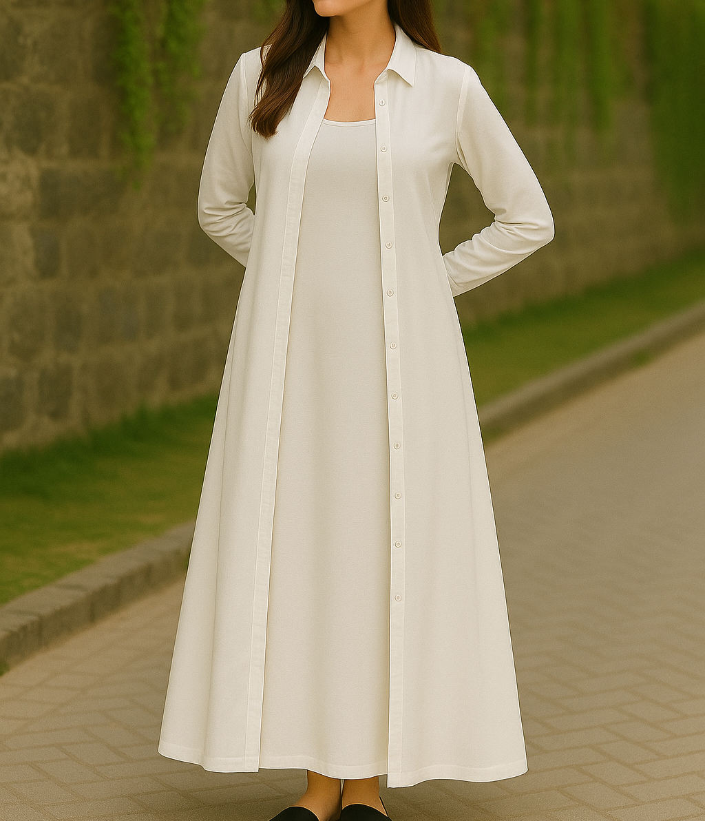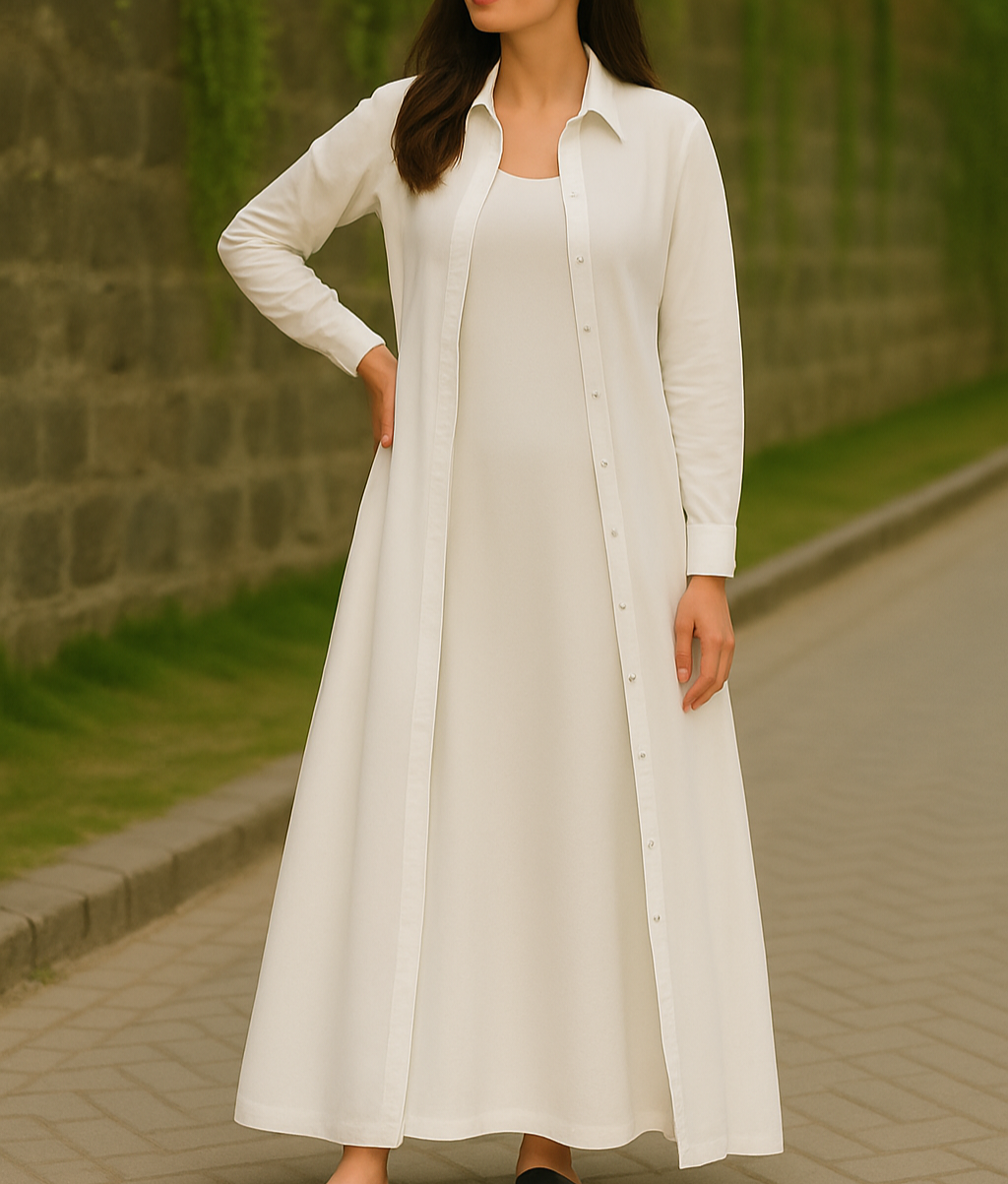 It Includes: Full Length Buttoned Shirt & Full Length Inner Gown