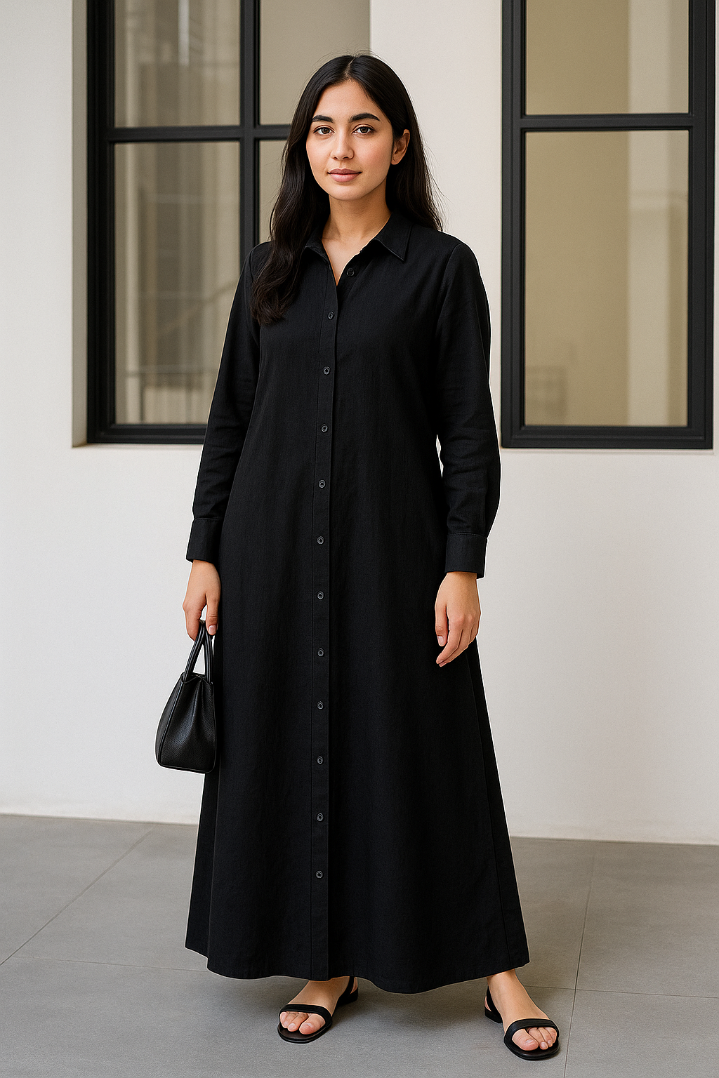 Elevate your everyday style with this graceful long dress, crafted from breathable weave cotton for all-day comfort. Designed with a flowing silhouette and minimal detailing, it's perfect for both casual outings and elevated occasions.