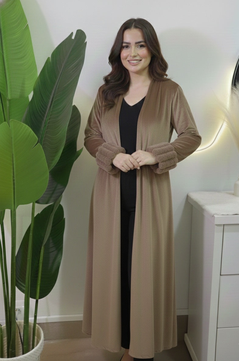 Wrap yourself in pure sophistication with this open-front velvet dress. Crafted from plush, touchably soft velvet, it drapes effortlessly over the body, creating a fluid, elegant silhouette. The open-front design adds a hint of drama while allowing graceful movement, making it perfect for evening events or upscale gatherings.