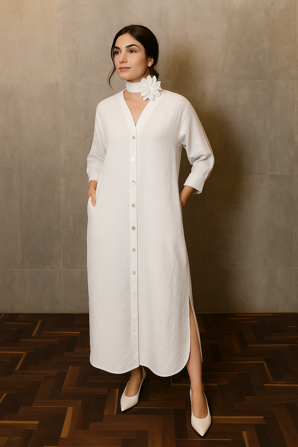 Effortlessly elegant with a touch of charm, this bow neck summer dress is a timeless addition to your warm-weather wardrobe. Designed with a graceful neckline tie that adds a feminine twist, this dress blends classic sophistication with modern ease. The lightweight fabric drapes beautifully, keeping you cool and comfortable on sunny days.